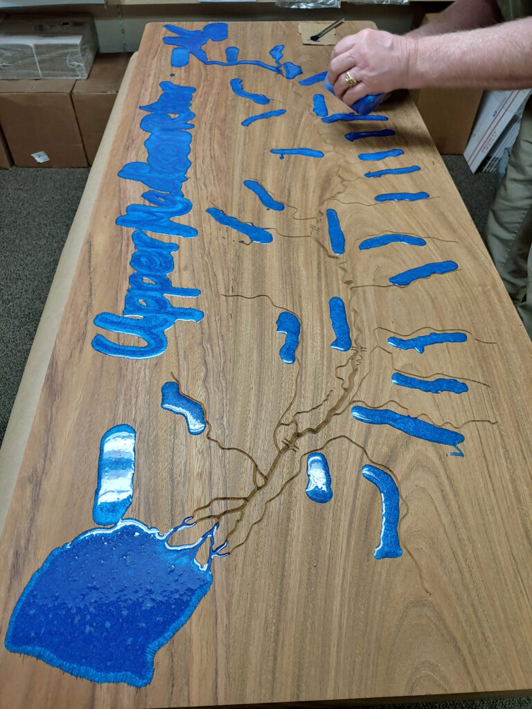 NEW AT THE STUDIO ~ BLUE RESIN RIVER MAP TABLES